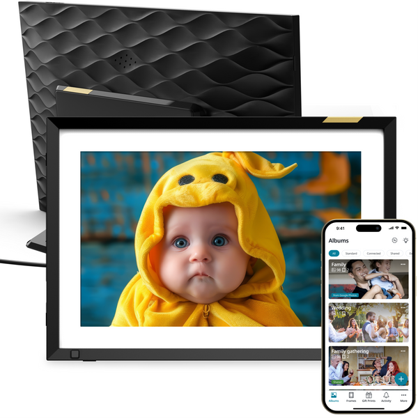 Upload photos, create multiple albums and select which ones to display on your frame